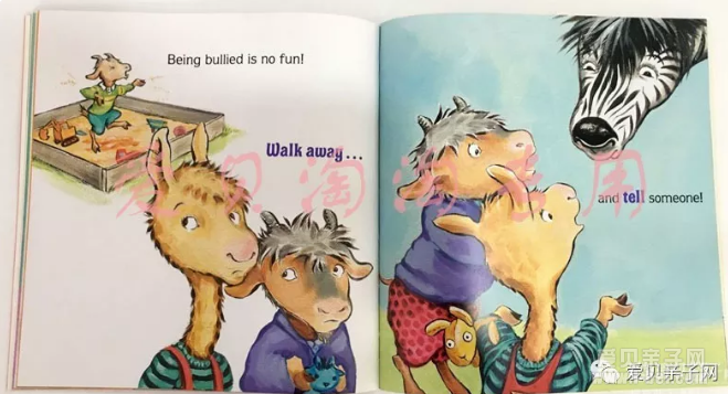 这只小羊驼不就是家里宝贝的缩影吗?他们怕黑;在公众场所撒泼耍赖;不愿去上学,不合群;不愿分享;缺乏耐心;分离焦虑;霸道,爱挑衅;欺负人与被欺负……对于孩子们来说,故事中那个调皮的小羊驼拉玛,活生生就是自己的真实写照。