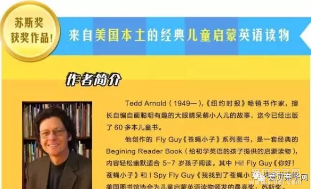 "Fly Guy"是知名作家Ted Arnold创作的系列图书,这个系列的第一本“Hi! Fly Guy”一经问世,就获得了2006年的“苏斯博士奖”,整个系列也是常年畅销,获奖无数。