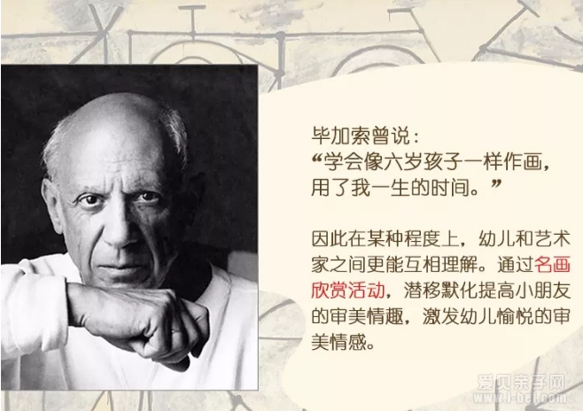 因此从某种程度上,幼儿和艺术家之间更能相互理解。通过名画欣赏活动,潜移默化提高小朋友的审美情趣,激发幼儿愉悦的审美情感。