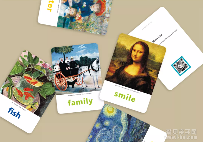 每张卡片,除了名家画作外,还搭配着英语单词,通过单词联想,为名画卡片增添更强的趣味。