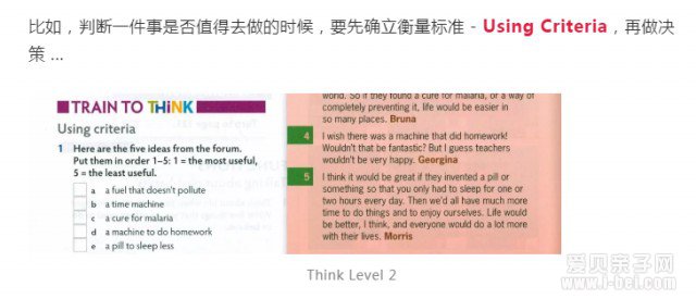 Critical Thinking 贯穿几乎每节课。一般会给出相关素材,然后带孩子通过 “Train to Think” 这个部分专门加强这方面的认识和训练。