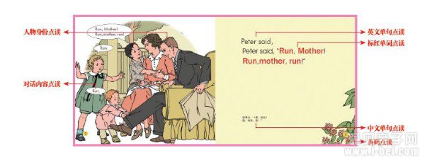 右页内容常规朗读,左页的对话分角色配音,语感更鲜明生动,像看动画片一样有趣。