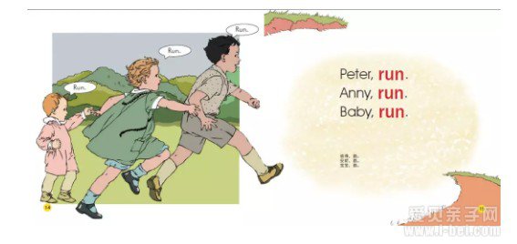 在第三册中,run又一次出现,这时不是作为重点词,但这一次一次的重复,孩子难道还记不住它吗?
