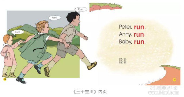 比如《三个宝贝》,只有两个重点词:see和run。