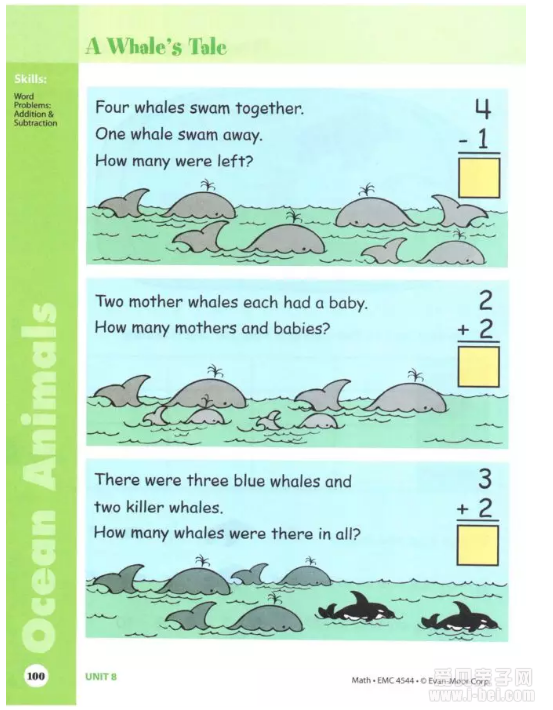 每个单元有不同的主题、不同年级,循序渐进,难度递增。有大量运用数学知识解决实际问题的练习,和孩子平时的学校数学学习角度有很大不同。思路的借鉴,数学的英语表达法,是最有用的。