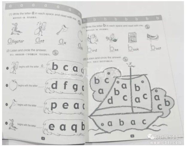 还有对应的练习册,从有趣的排序、涂色、画圈、勾选小游戏中,锻炼孩子的听力,复习学过的字母发音。