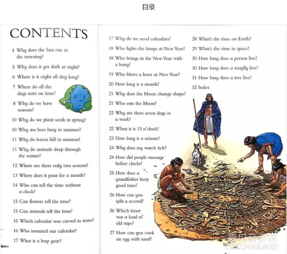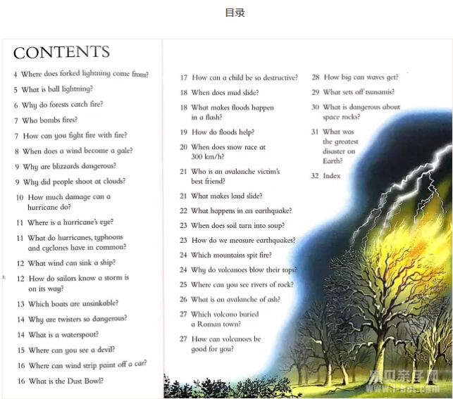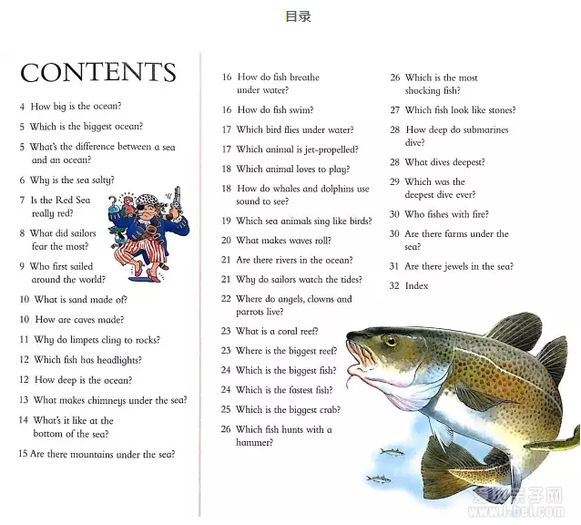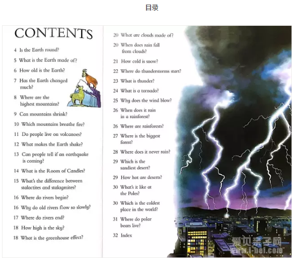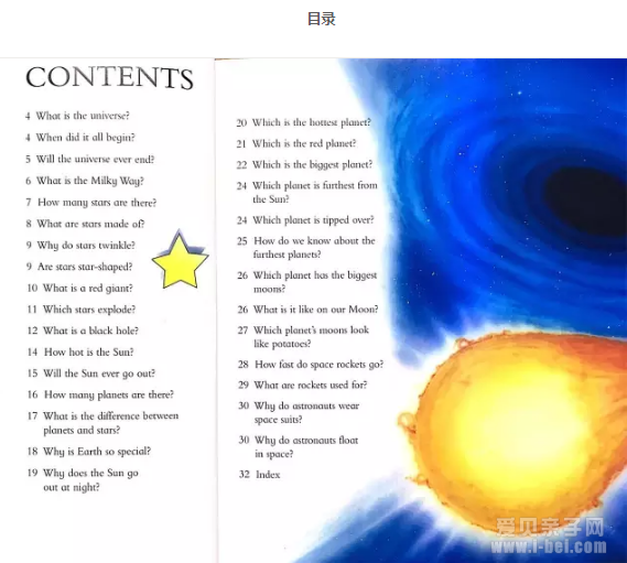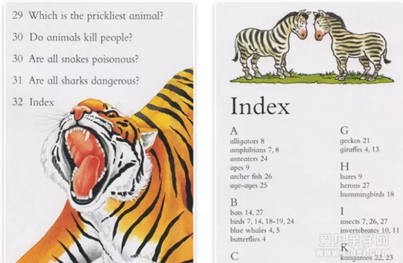 每本书32页,一般30-40个问题。每本书开头有目录,最后有索引。阅读时可以先挑孩子感兴趣的问题或主题读起来,很快可以读完一本。如果碰到孩子特别喜欢的部分,可以更加侧重语言的学习,比如专有词汇,表达方式等,如果书中的语言孩子都能掌握,也是非常了不起的。
