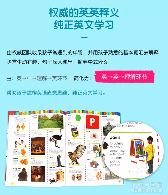 对于国内4-10岁的孩子来说,拥有一本带图的英英词典对英文学习会有很大的帮助,而且相对轻松!这不仅是为了准确查找生活常用的高频词,更能通过反复查阅视觉图像而将单词深深地烙印在脑海里。谁说单词只能死背?要我说“认单词”的学习才是高招!