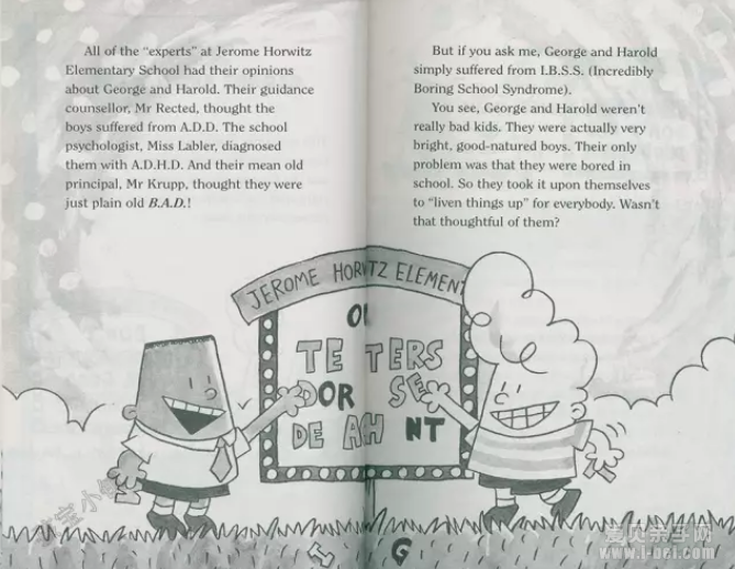 他最讨厌那两个小家伙的恶作剧和俏皮话,讨厌他们大大咧咧的样子,还讨厌他俩从早到晚不停地发出“咯咯咯”的笑声。不过他最讨厌的,还是那些惹人烦的“内裤超人”搞笑漫画。
