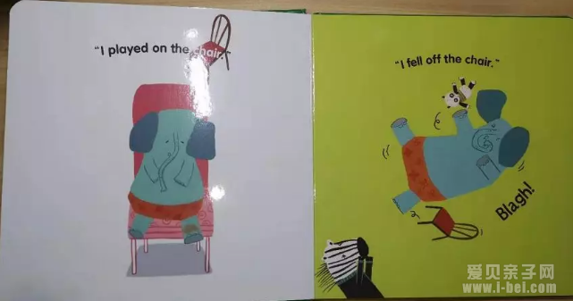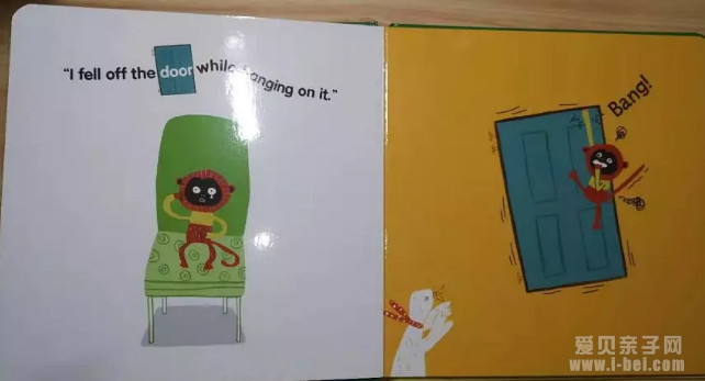 这句话读到fell off the chair 的时候,父母可以配上重重的音效,