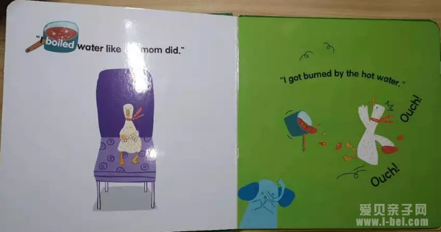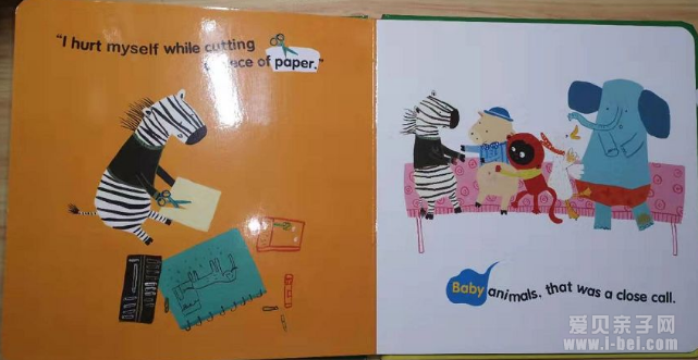 这本绘本讲的是小动物们在日常生活中发生的一系列意外, 告诉孩子们有些危险的事情千万不要去做, 一定要Be careful.