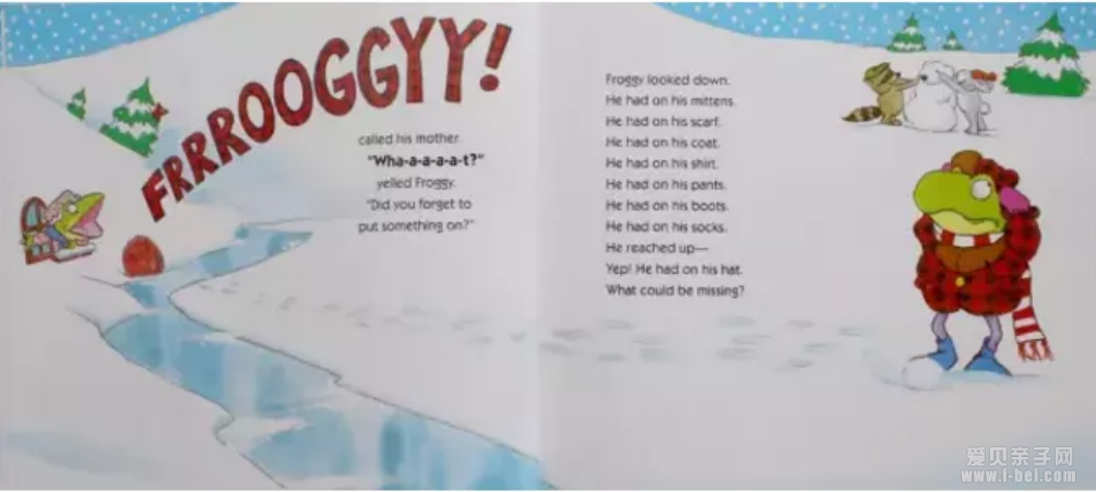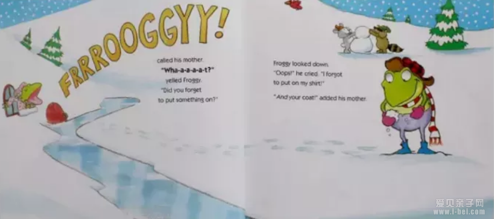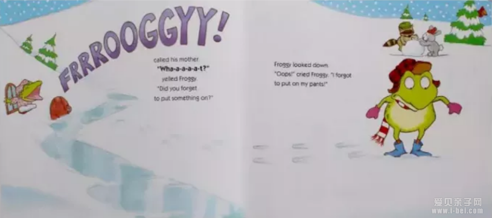 "Oops!" cried Froggy. "I forgot to put on my pants!"