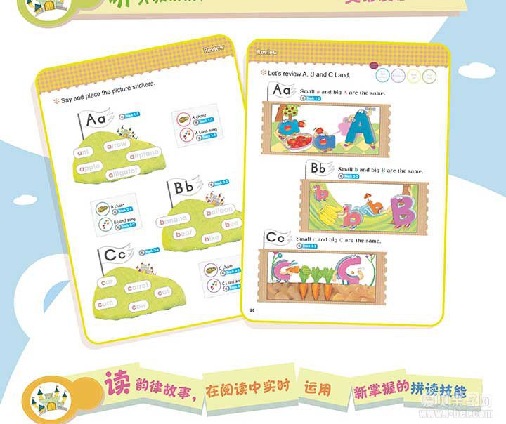 最后还有朗朗上口又押韵的儿歌和短文,让孩子运用学会的拼读技巧。
