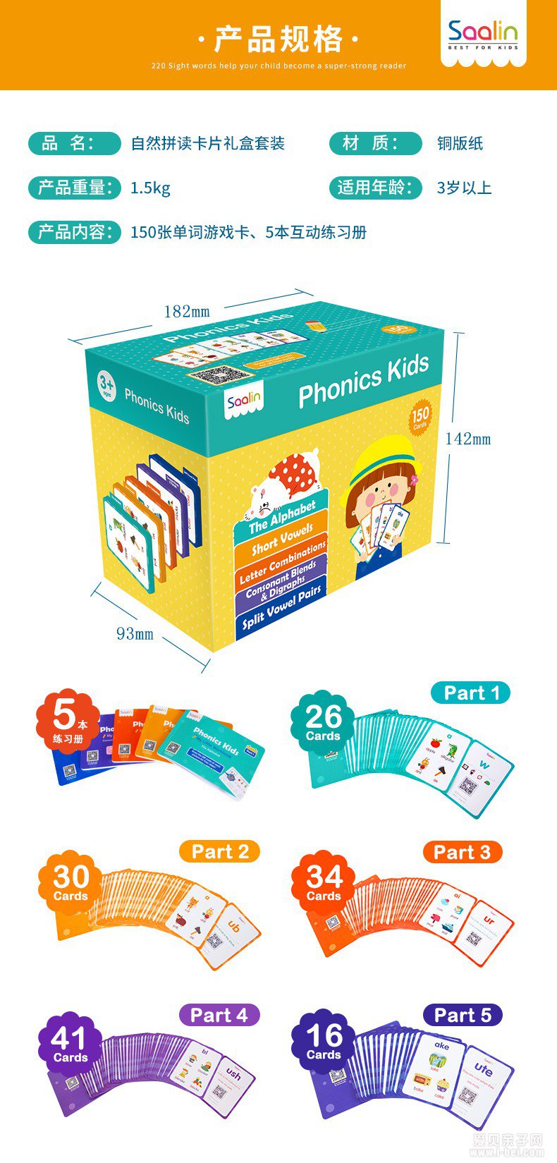 2.莎林自然拼读卡片礼盒装(150张卡片,限量送蛇棋)