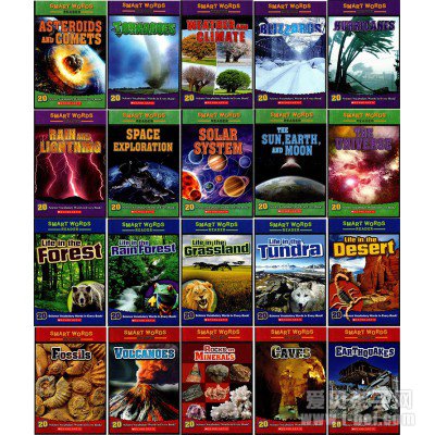 这套书一共20册,覆盖了小学生常遇到的“地球与自然”学科。比如天文、地质、气候和生命,等等。每册书是一个科学主题,通过阅读、游戏、练习让孩子学透这个领域的20个核心的Smart Words,比如,关于“火山”,书中会学到 ash, crater, crust, evacuate, lava, predict ...