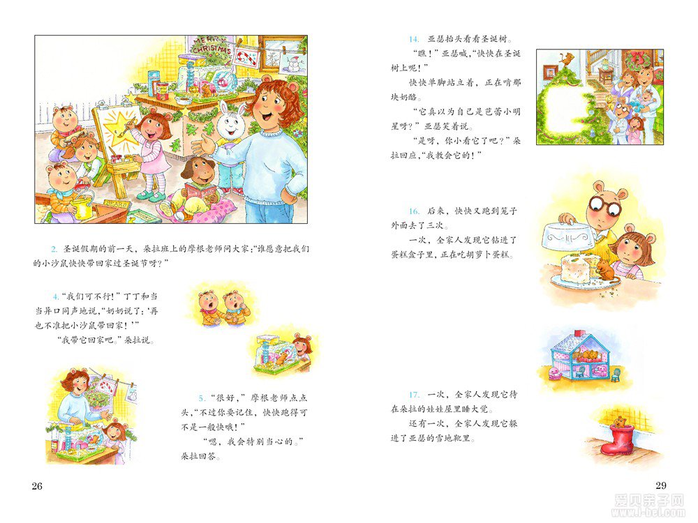 这套书的文字简短,画面如同情景喜剧,便于孩子树立自读信心。看完这个系列,孩子将学会说很多新的词句,都能把整本书背出来。