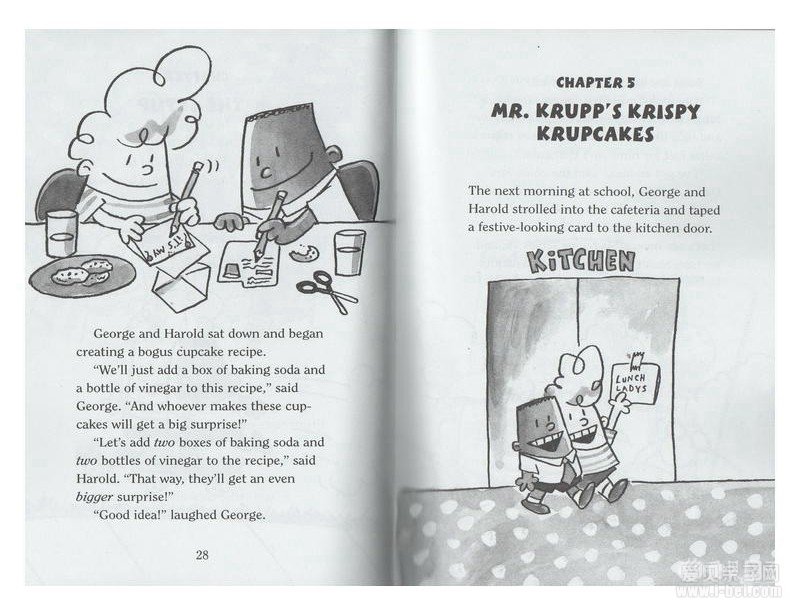 由戴夫皮尔奇(Dav Pilkey)创作的《内裤超人》Captain Underpants系列书,深受小朋友们的喜爱,特别让男孩“沉迷”于阅读!故事讲述了两个捣蛋的四年级学生哈罗德(Harold)和乔治(George),他们用催眠术把讨厌校长本尼 克鲁普先生(Mr Krupp)变成了穿着内裤的超人——“内裤超人”。