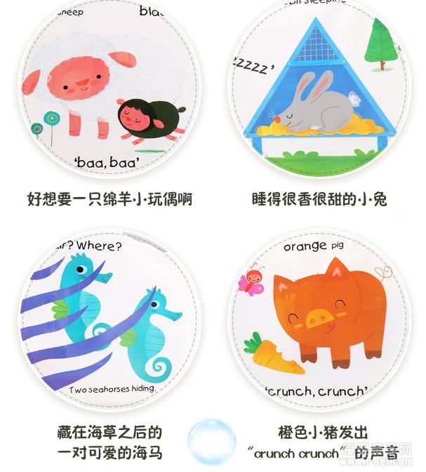 Play with Animal friends(精细运动技能洗澡书——和小动物一起玩吧),最适合幼儿的多类认知启蒙5个数字、6种形状、9种颜色、25种小动物一本书至少包含一类认知,以最贴合幼儿的启蒙方式让孩子一点点来认识这个可爱的世界。