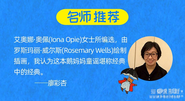 《鹅妈妈童谣》是流传在英国各地儿歌童谣的总称。如果说,每个中国小朋友都是在《摇呀摇 摇到外婆桥》、《小老鼠上灯台》等儿歌的吟诵长大的,那么英语系国家的小朋友们就是在《鹅妈妈童谣》的陪伴下一路长大。