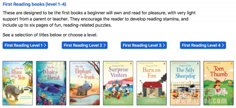 Usborne的分级阅读体系称为 The Usborne Reading Program,就是我们说的“图书馆”系列,这个系列分为七个级别,难度逐渐递增,大致分为两个阶段: