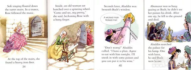 3、Young Reading Series One:20本。从这里进入了桥梁书、章节书部分。字数1000-1500,每页10行,每行15词左右。继续以童话为主线,比如《睡美人》、《阿拉丁神灯》、《灰姑娘》等等,你能想到了基本上都囊括了。