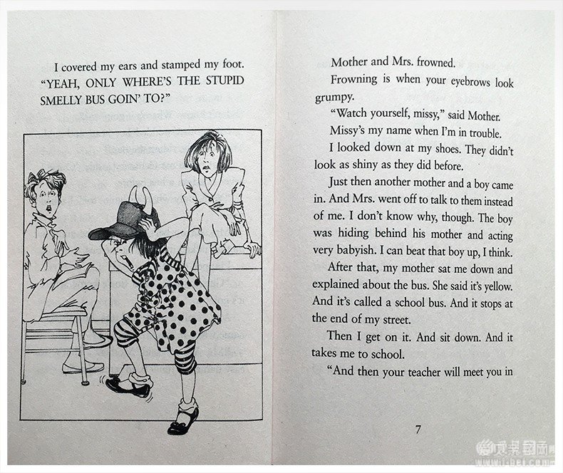 可以说,朱妮琼斯系列的文字不算多,而且浅显易懂。我随意贴一页内页图,大家仔细看看就会发现:以高频词汇为主,少见的形容词、副词其实不多。哪怕是有一些之前比较少用的名词,在故事里多见几次,也就熟悉了。方便孩子的阅读不至于磕磕绊绊。