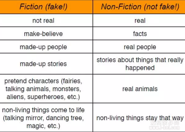 通过Fiction 和Non- Fiction文本特征的对比,我们发现小说类通常有是虚构的人物,可以是精灵,会说话的动物、怪兽、外星人、超级英雄等,也可以是无生命的事物复活了,比如会说话的镜子,跳舞的树,魔法等等。