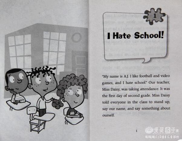 《疯狂学校》是很多美国小学教室里的必备书目,这一系列故事中有很多对白,人物的描写亲切真实。小孩们读起来很容易把故事中的人物跟身边的同学联想在一起,特别容易体会文中的幽默。另外,每本里部分句子的重复性很强,便于小朋友理解。对话中穿插了不少习惯用语和俚语,口语中很常用。