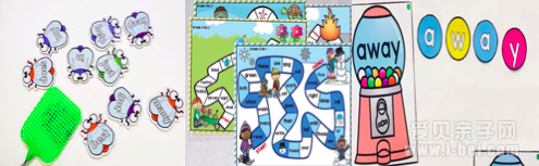 家长也可以和孩子一起制作有趣的单词游戏,在制作和玩的过程中,加深对这些词的印象。如打苍蝇,和孩子一起制作苍蝇,再把常见词写在上面,让孩子在玩中学。