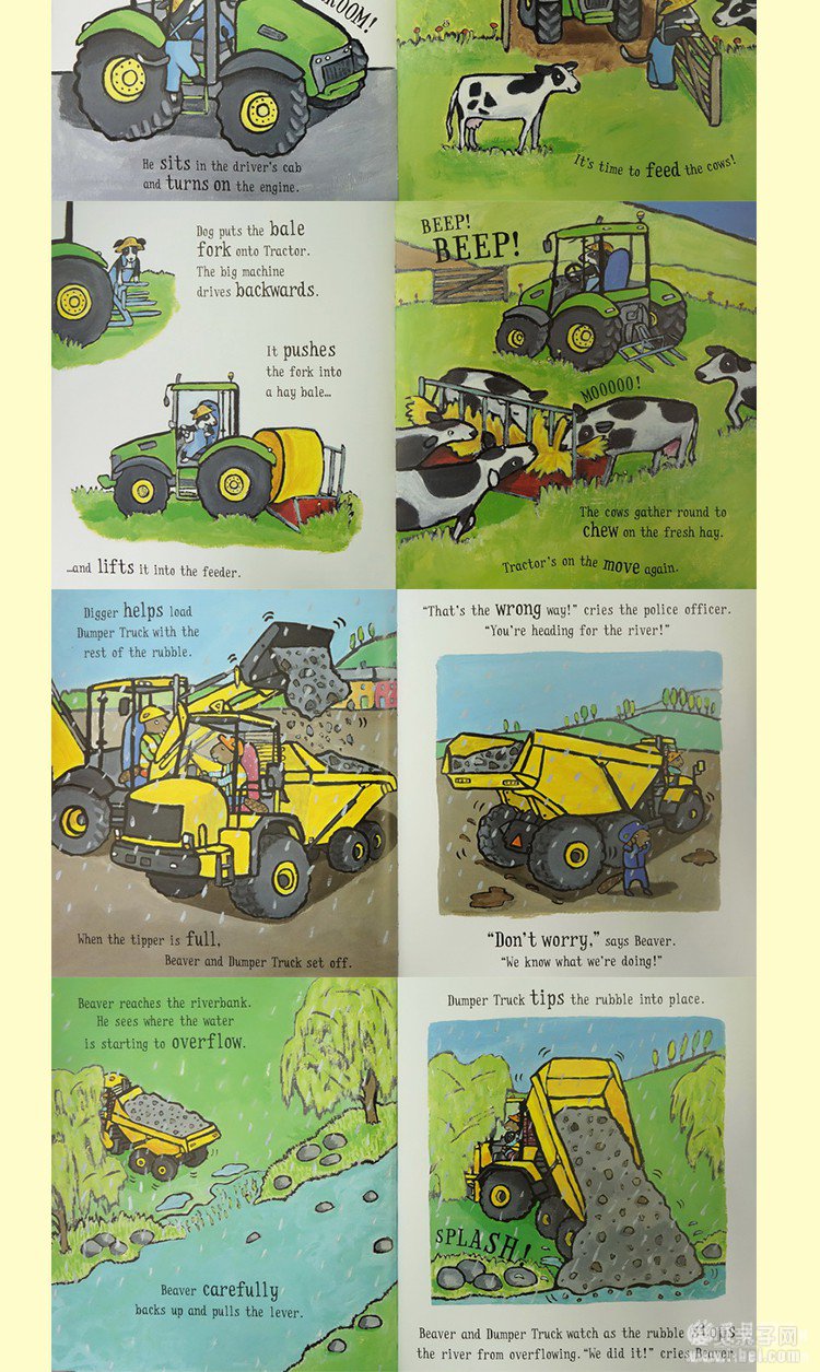 《拖拉机》:本书讲述了小狗驾驶拖拉机管理牧场的故事,并向小读者介绍了关于拖拉机的零部件和工作原理。