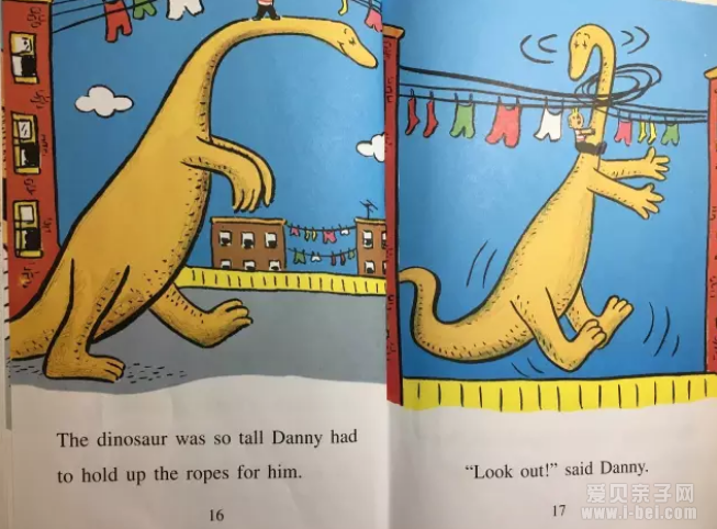 “我们去找我的朋友们,”丹尼说。“很好,”恐龙说。