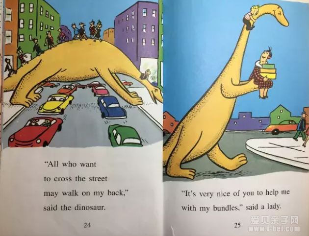 “所有想过马路的人都可以在我的背上走过去,”恐龙说。