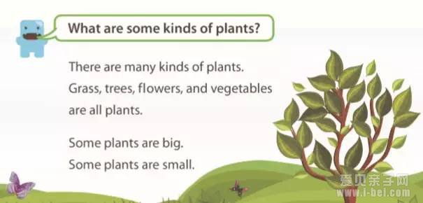 在植物分类的单词下方是句子,包含了常用句型,既可以再次熟悉上面的单词,也可以学习相对复杂的句型。