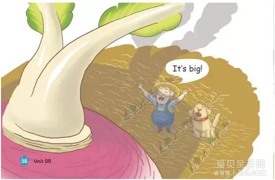 在学习pull这个词的时候,书本中配了一个超级大的萝卜,农民伯伯和婶婶,满头大汗,憋得满脸通红,都没有把萝卜拉出来。